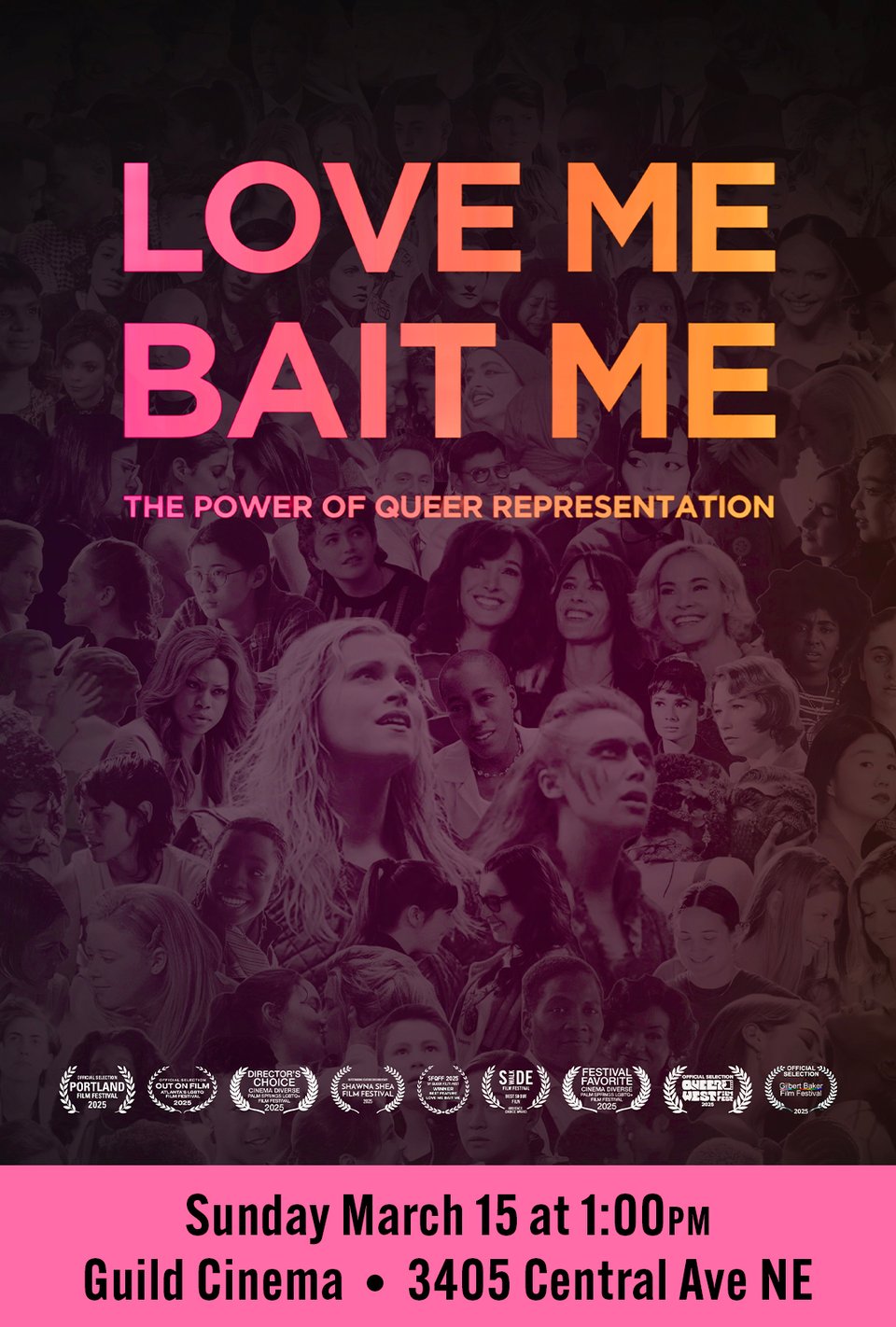 Love Me Bait Me: The Power of Queer Representation (Dir. Rachel van der Bie, 2025, 79m) Sunday March 15, 1pm only, all seats $8 at Guild Cinema, 3405 Central Ave NE. The movie's editor Erika Lygren (she/her) will be in person for a short intro & post screening discussion! Trailer HERE.