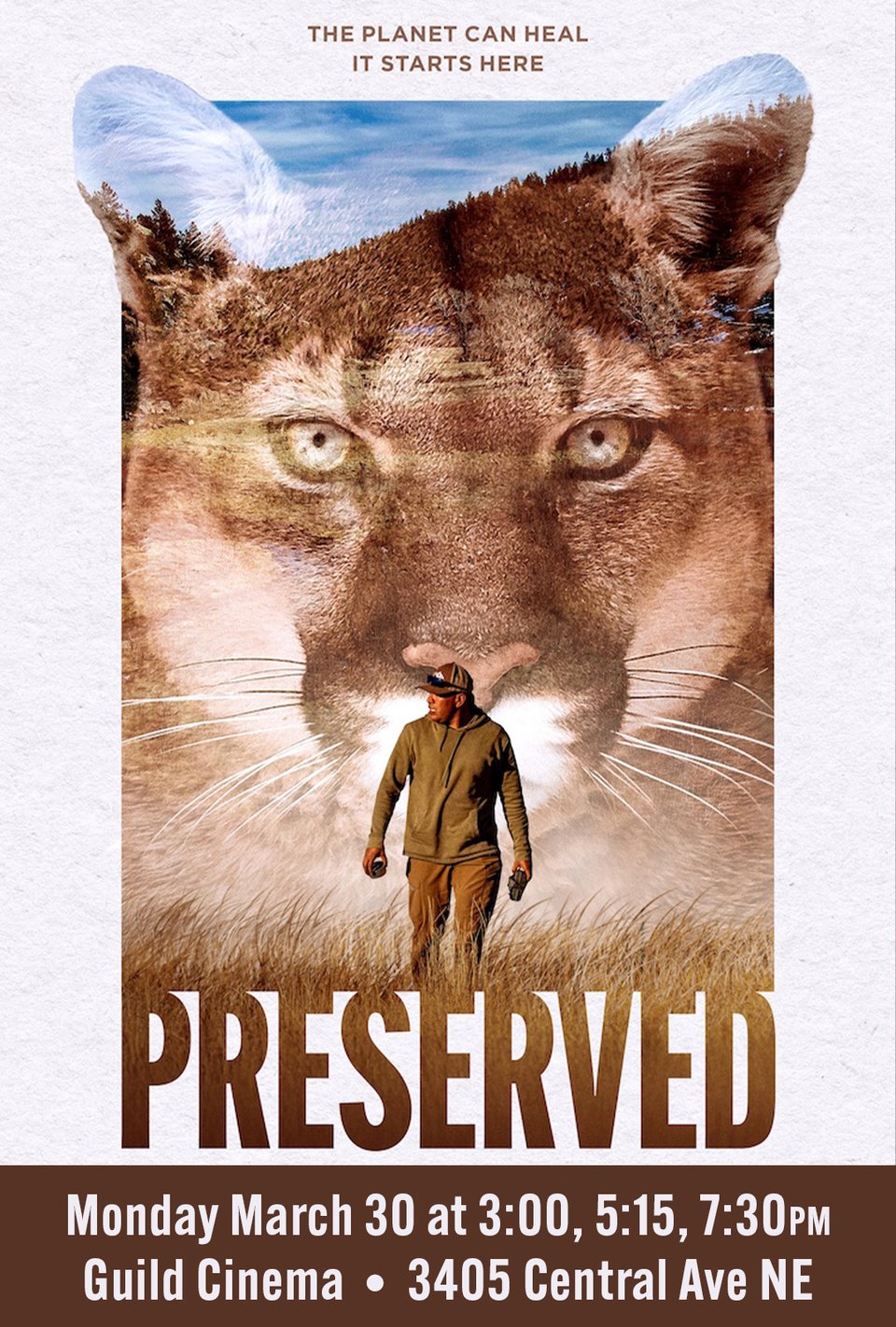 Preserved: The Story of Ted Turner’s Vermejo (Dir. Ben Clark - 2025 - 94m) Monday, March 30, 3pm/5:15pm/7:30pm at Guild Cinema, 3405 Central Ave NE. Guest speakers TBA, trailer HERE.