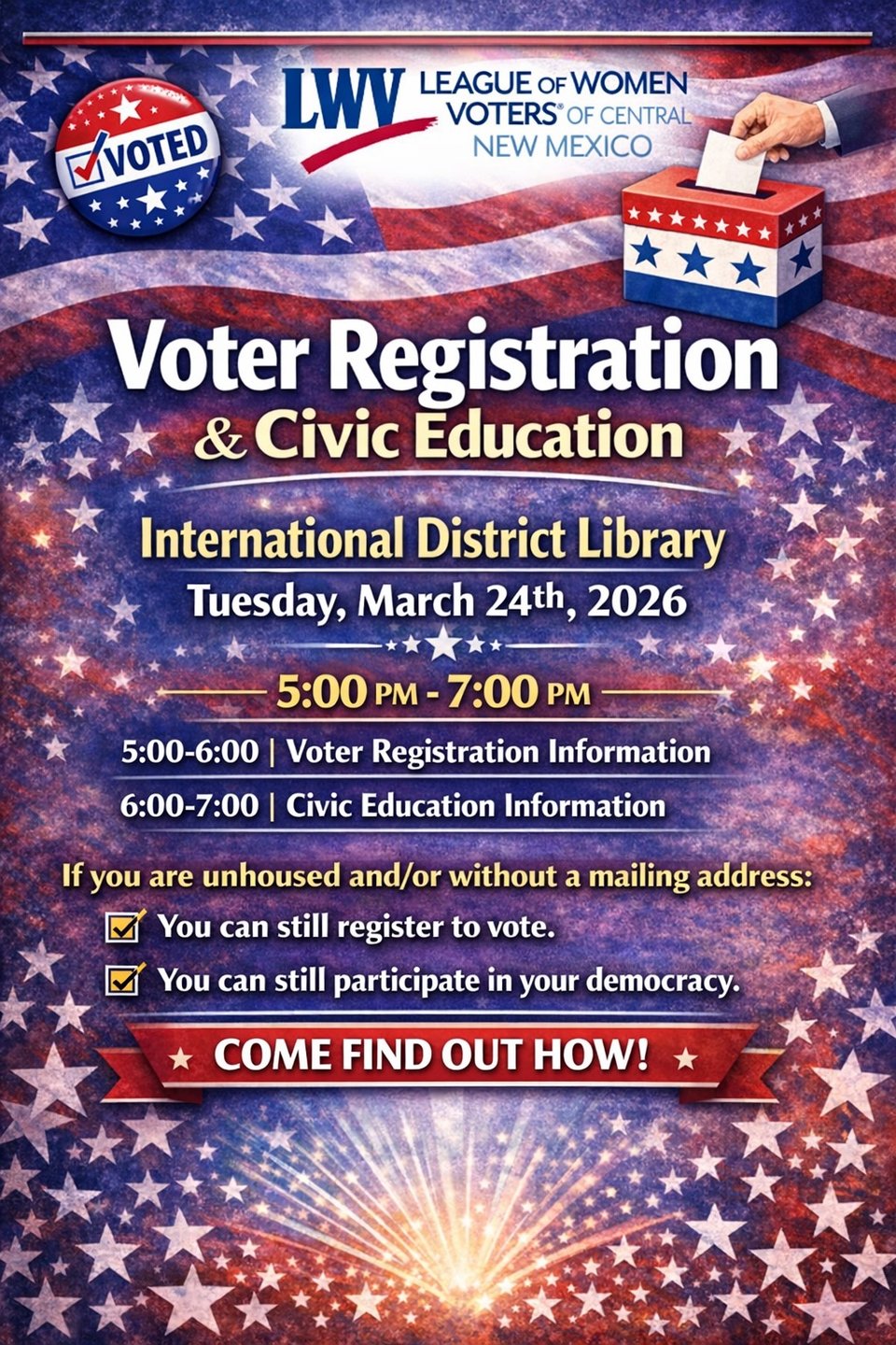 s. Mar. 24: LWVNM Voter Registration & Civic Education