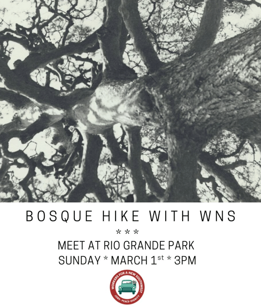 Sunday, March 1, 3pm: Workers for a New Southwest kick off their March activities with a Bosque Hike at Rio Grande Park, 1744 Kit Carson Ave. SW. Contact: workersforanewsouthwest@proton.me.